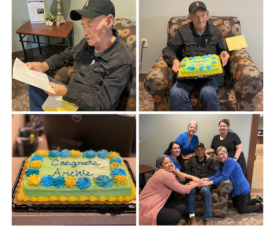 We got to celebrate one of our residents, Archie H., as he finished his last round of radiation this past month. He always has a positive attitude and is such a kind soul, we are so lucky to have him. Congratulations, Archie!